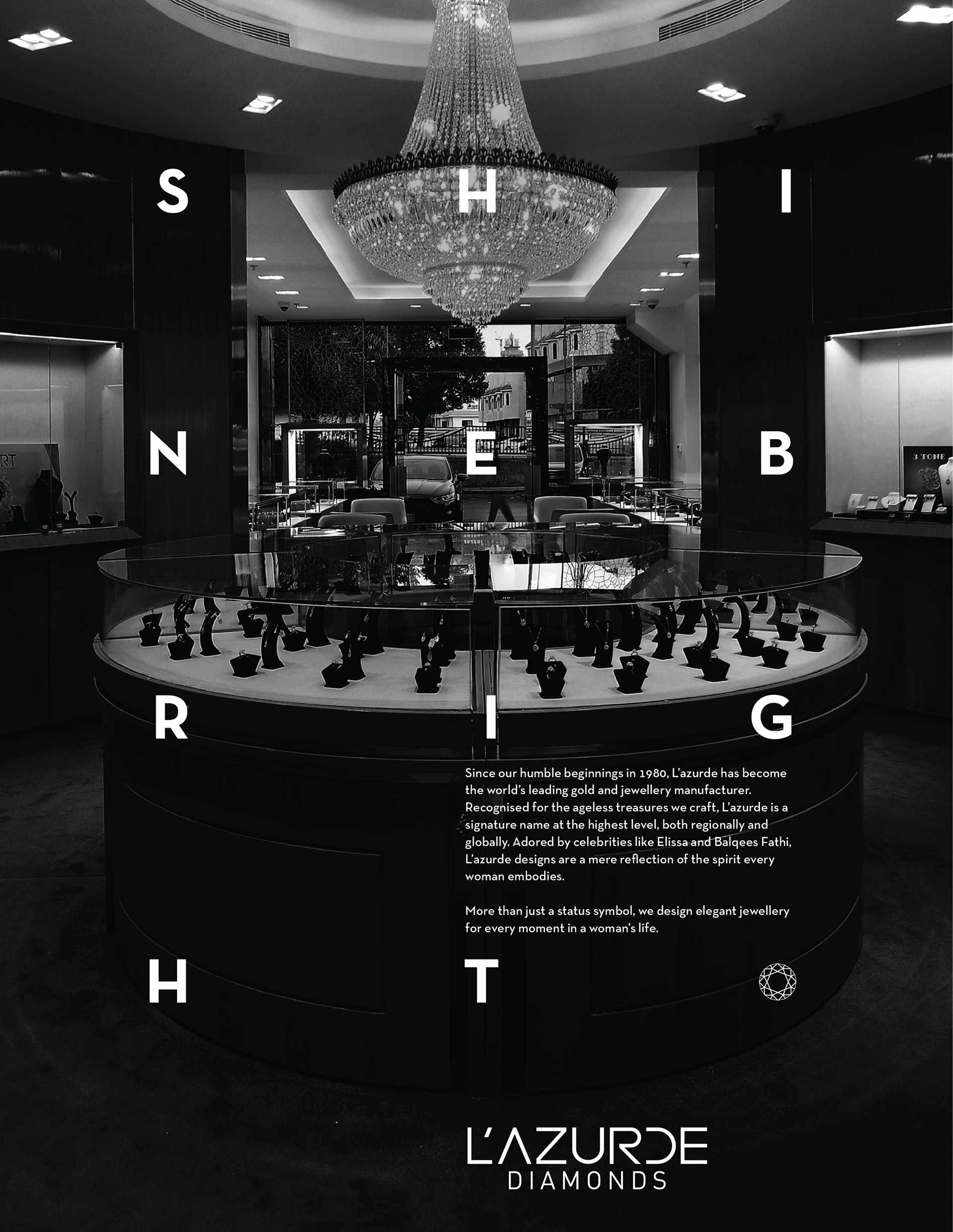 Corporate Ad designed for L'azurde diamond retail division in 2017 while utilizing the brands head store in Riyadh for the layout Agency: MullenLowe Dubai/ Riyadh Copywriter: Unknown